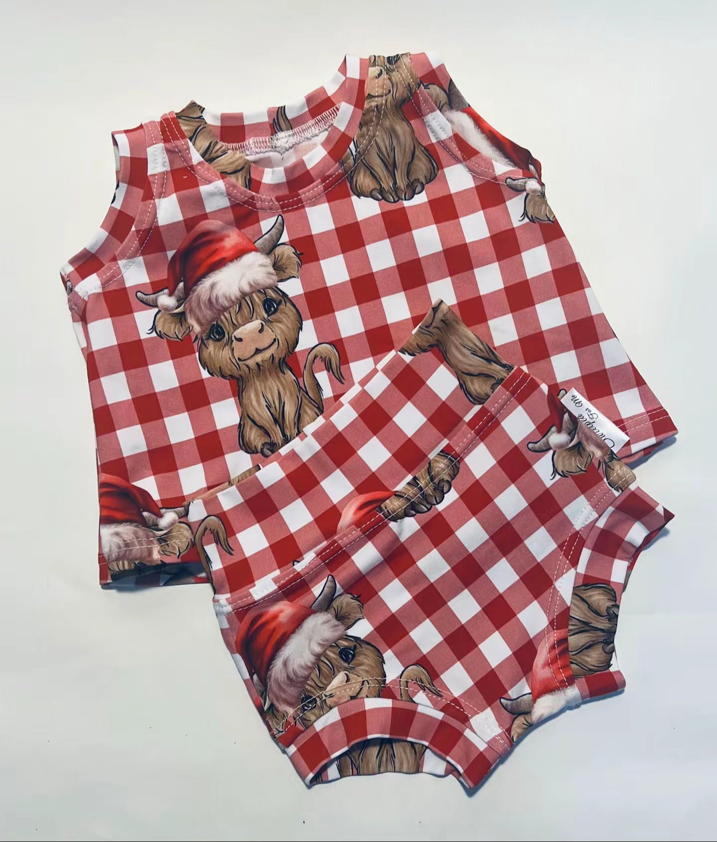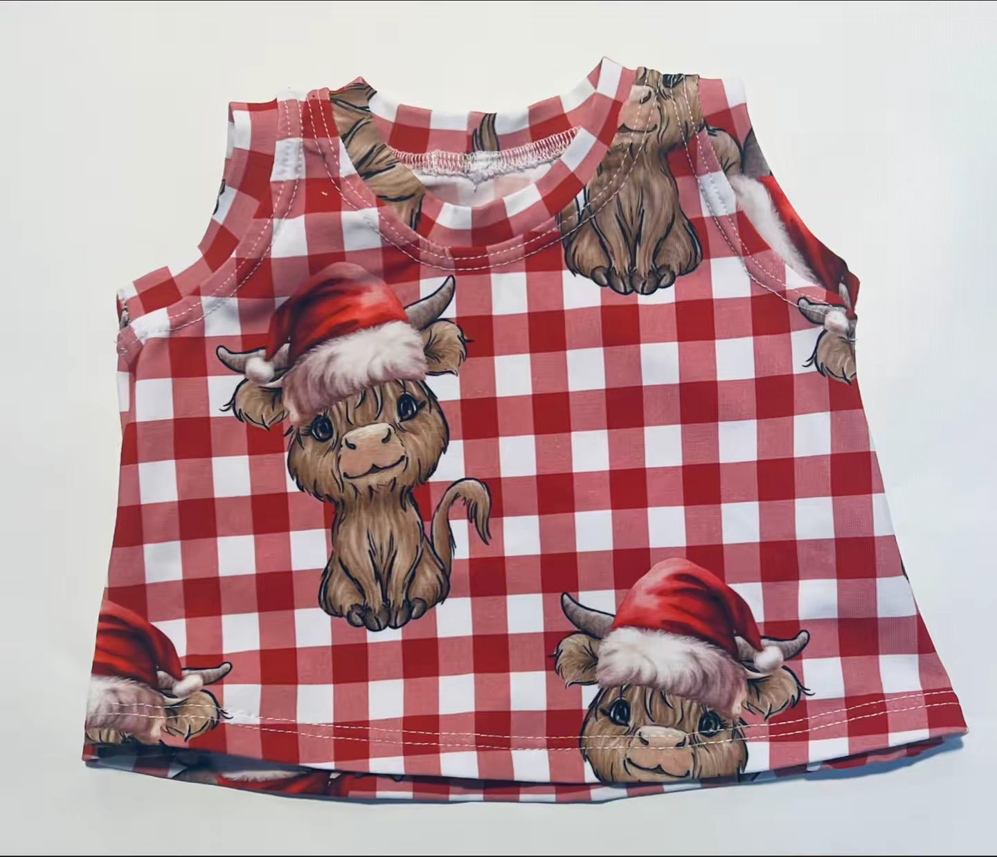 This swing top set features a sweet Highland cow design on a festive Christmas knit fabric, offering a charming and seasonal style. Crafted with comfort and quality in mind, it’s perfect for holiday celebrations.