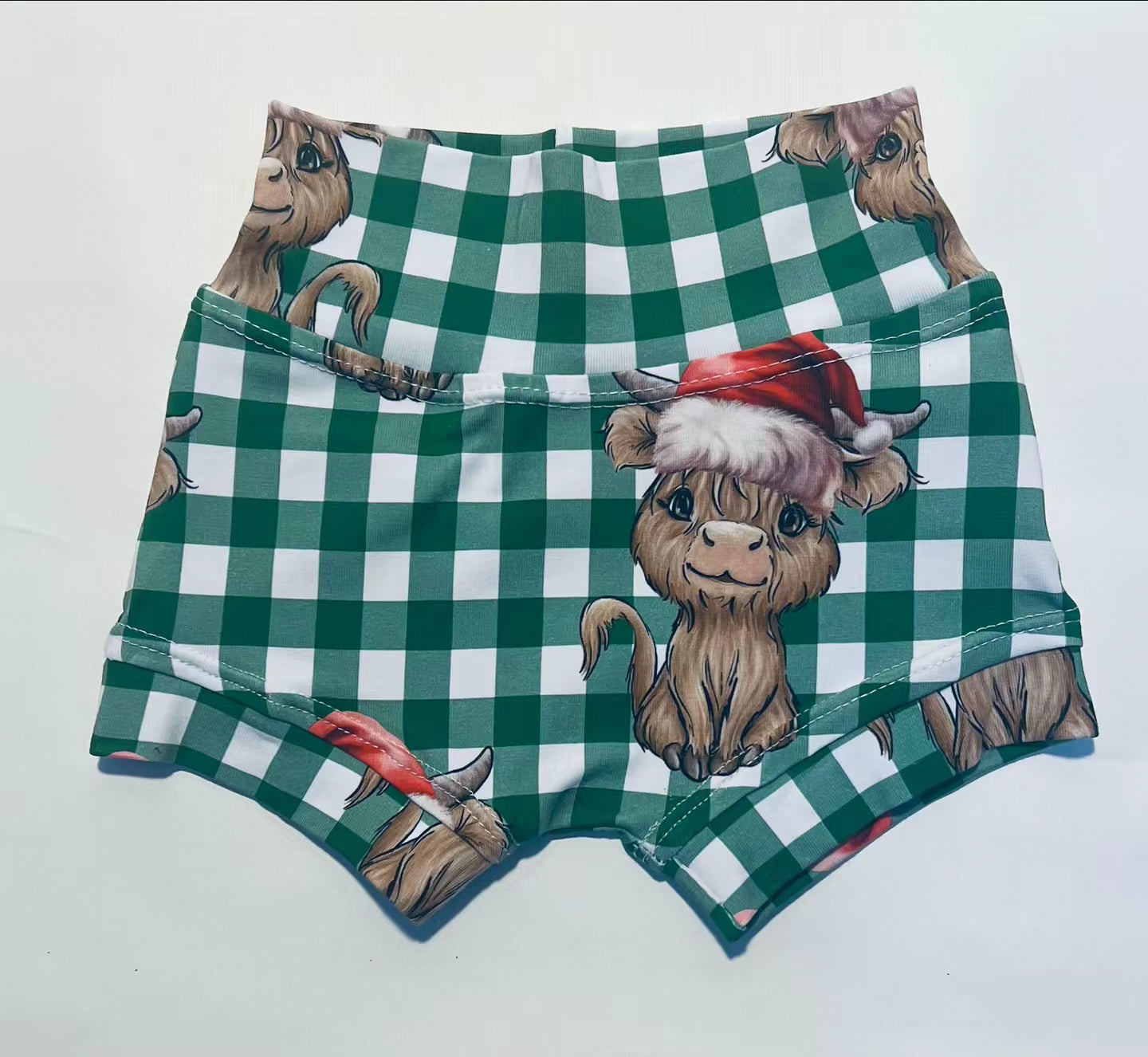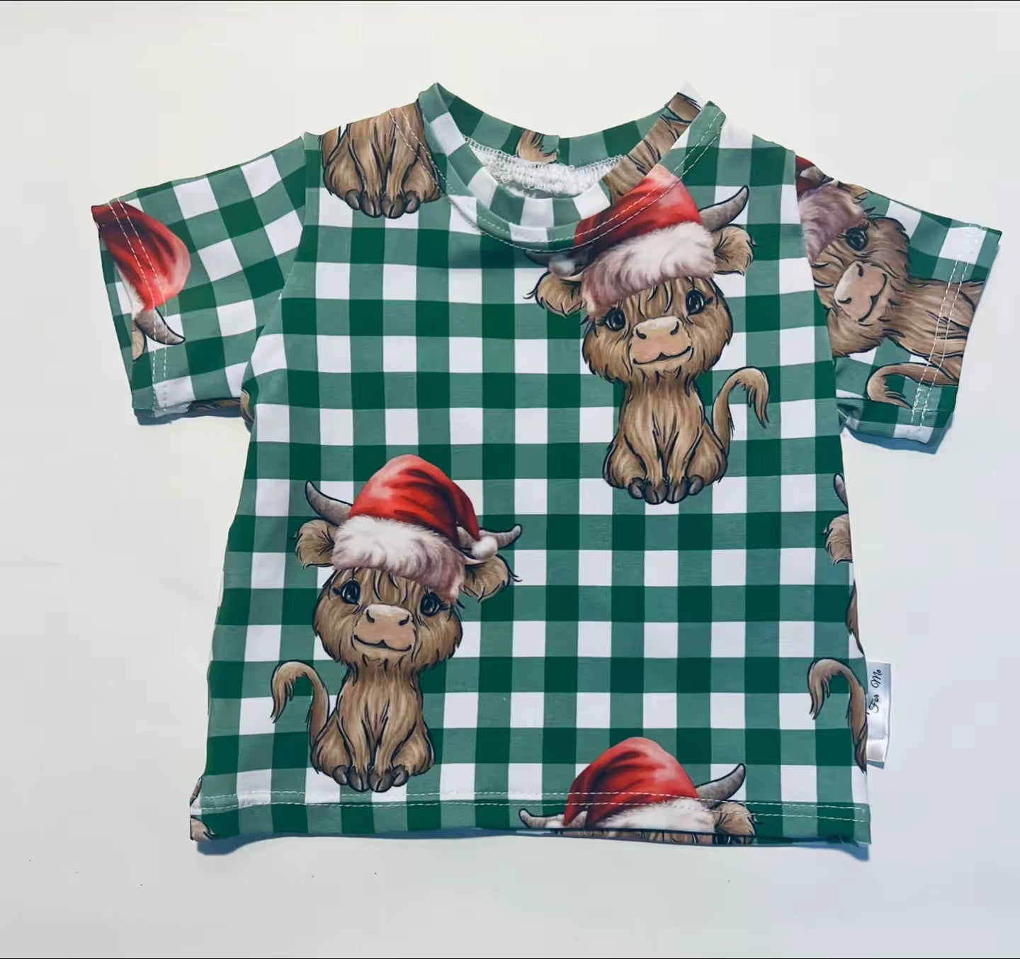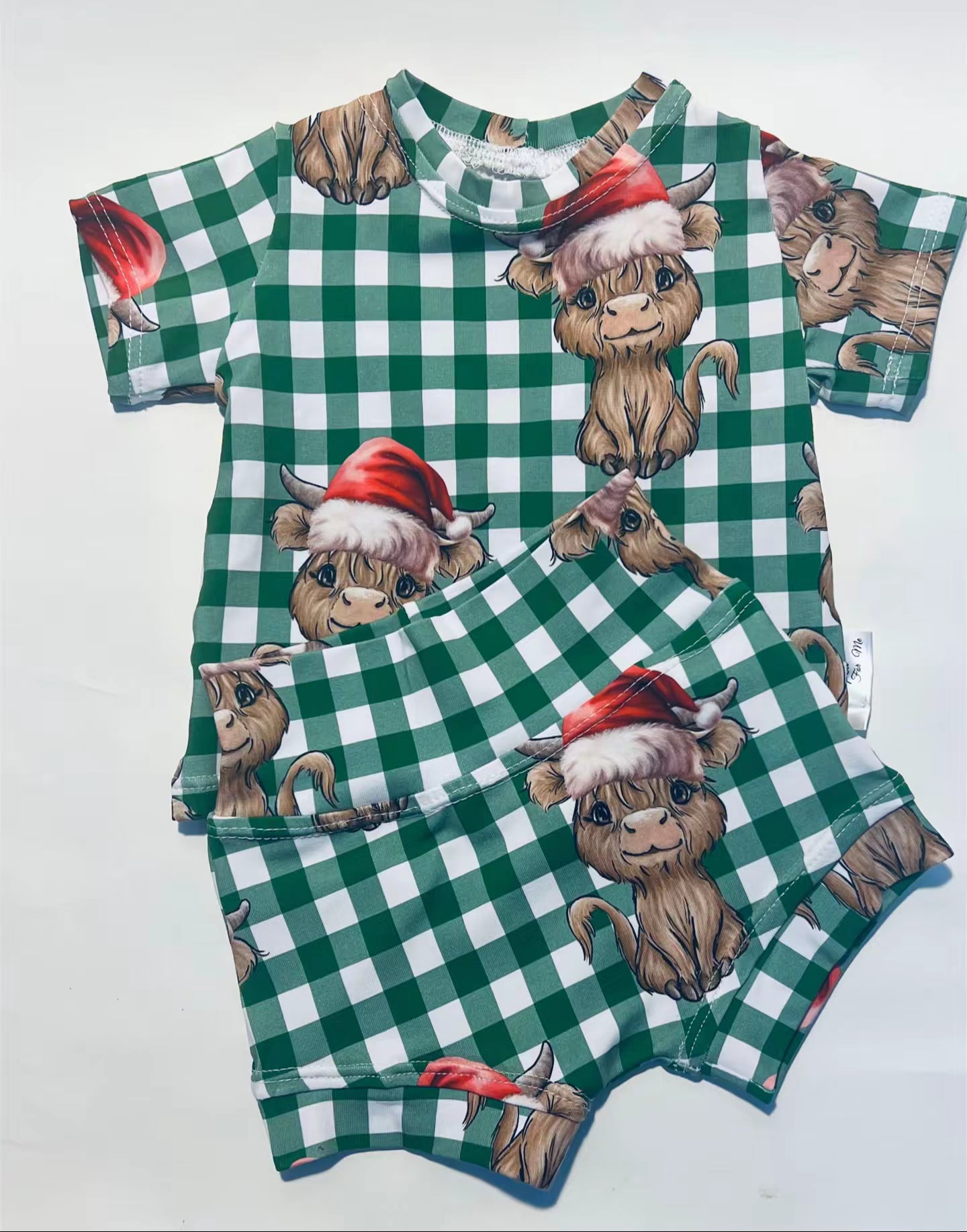 Celebrate the holiday season in style with our Christmas-themed T & Shorties set, featuring a cute Highland cow print on soft, breathable knit fabric. Designed for comfort and durability, this outfit is perfect for festive occasions or everyday wear.